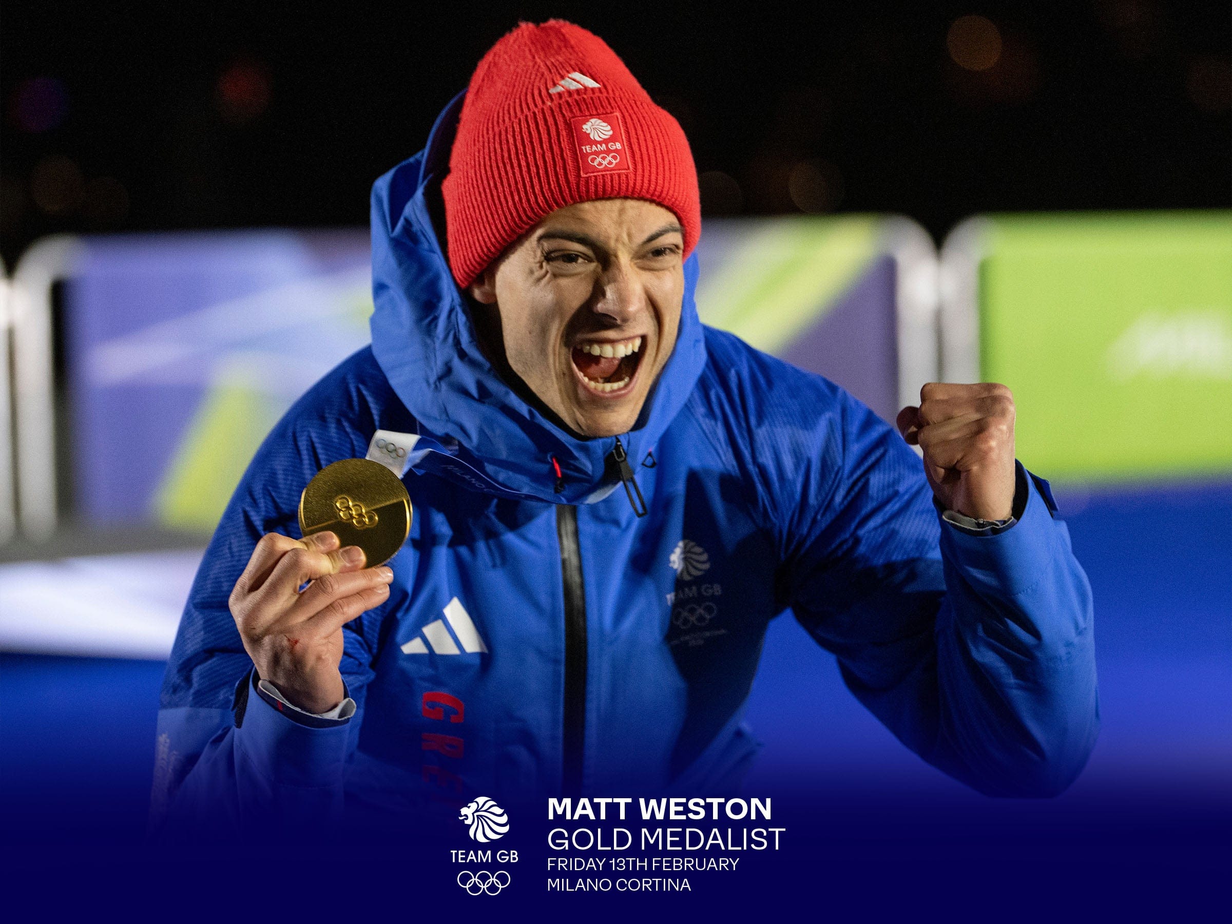 Celebrate a golden moment in British sporting history with this dynamic Matt Weston Gold Medalist commemorative print.